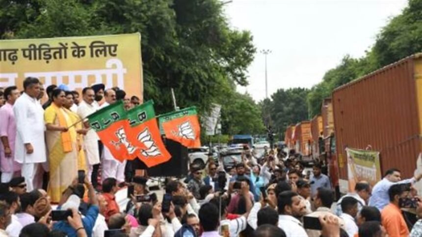 ਪ੍ਰਧਾਨ ਮੰਤਰੀ ਨਰਿੰਦਰ ਮੋਦੀ ਦੇ ਪੰਜਾਬ ਦੇ ਹੜ੍ਹ ਪ੍ਰਭਾਵਿਤ ਇਲਾਕਿਆਂ ਦੇ ਦੌਰੇ ਤੋਂ ਪਹਿਲਾਂ, ਦਿੱਲੀ ਦੀ ਭਾਜਪਾ ਸਰਕਾਰ ਨੇ ਆਫ਼ਤ ਪੀੜਤਾਂ ਲਈ ਇੱਕ ਵੱਡਾ ਰਾਹਤ ਕਾਰਜ ਕੀਤਾ ਹੈ। ਦਿੱਲੀ-ਐਨਸੀਆਰ ਵਿੱਚ ਵੀ ਹੜ੍ਹਾਂ ਨੇ ਬਹੁਤ ਸਾਰੀਆਂ ਸਮੱਸਿਆਵਾਂ ਪੈਦਾ ਕੀਤੀਆਂ ਹਨ। ਇਸ ਦੇ ਨਾਲ ਹੀ, ਪੰਜਾਬ ਰਾਜ ਵਿੱਚ ਹੜ੍ਹਾਂ ਨੇ ਆਫ਼ਤ ਦਾ ਰੂਪ ਧਾਰਨ ਕਰ ਲਿਆ ਹੈ। ਦੇਸ਼ ਭਰ ਦੇ ਲੋਕ ਪੰਜਾਬ ਵਿੱਚ ਮਦਦ ਪਹੁੰਚਾਉਣ ਲਈ ਇੱਕ ਮੁਹਿੰਮ ਚਲਾ ਰਹੇ ਹਨ। ਇਸ ਕ੍ਰਮ ਵਿੱਚ, ਦਿੱਲੀ ਦੀ ਭਾਜਪਾ ਸਰਕਾਰ ਨੇ ਐਤਵਾਰ ਨੂੰ ਪੰਜਾਬ ਦੇ ਹੜ੍ਹ ਪੀੜਤਾਂ ਲਈ ਰਾਹਤ ਸਮੱਗਰੀ ਦੇ 52 ਟਰੱਕ ਭੇਜੇ।ਇਸ ਮੌਕੇ ’ਤੇ ਦਿੱਲੀ ਦੀ ਮੁੱਖ ਮੰਤਰੀ ਰੇਖਾ ਗੁਪਤਾ ਨੇ ਪੂਰੇ ਮੰਤਰੀ ਮੰਡਲ ਦੇ ਨਾਲ ਰਾਹਤ ਸਮੱਗਰੀ ਨੂੰ ਹਰੀ ਝੰਡੀ ਦਿਖਾ ਕੇ ਰਵਾਨਾ ਕੀਤਾ ਅਤੇ ਕਾਮਨਾ ਕੀਤੀ ਕਿ ਸਭ ਕੁਝ ਜਲਦੀ ਤੋਂ ਜਲਦੀ ਆਮ ਵਾਂਗ ਹੋ ਜਾਵੇ। ਇਸ ਤੋਂ ਪਹਿਲਾਂ, ਦਿੱਲੀ ਸਰਕਾਰ ਨੇ ਭਿਆਨਕ ਹੜ੍ਹਾਂ ਦੀ ਮਾਰ ਝੱਲ ਰਹੇ ਪੰਜਾਬ ਲਈ ਇੱਕ ਹੋਰ ਵੱਡਾ ਐਲਾਨ ਕੀਤਾ ਹੈ। ਇਸ ਆਫ਼ਤ ਦੌਰਾਨ, ਦਿੱਲੀ ਦੀ ਮੁੱਖ ਮੰਤਰੀ ਰੇਖਾ ਗੁਪਤਾ ਨੇ ਸ਼ਨੀਵਾਰ ਨੂੰ ਸੂਬੇ ਲਈ ਇੱਕ ਵੱਡਾ ਐਲਾਨ ਕਰਦਿਆਂ ਕਿਹਾ ਕਿ ਦਿੱਲੀ ਸਰਕਾਰ ਨੇ ਪੰਜਾਬ ਦੇ ਮੁੱਖ ਮੰਤਰੀ ਰਾਹਤ ਫੰਡ ਵਿੱਚ 5 ਕਰੋੜ ਰੁਪਏ ਦਾ ਯੋਗਦਾਨ ਪਾਉਣ ਦਾ ਫੈਸਲਾ ਕੀਤਾ ਹੈ। ਇਹ ਰਾਹਤ ਸਮੱਗਰੀ ਇਸ ਰਾਹਤ ਫੰਡ ਵਿੱਚੋਂ ਜਾਰੀ ਕੀਤੀ ਗਈ ਹੈ।