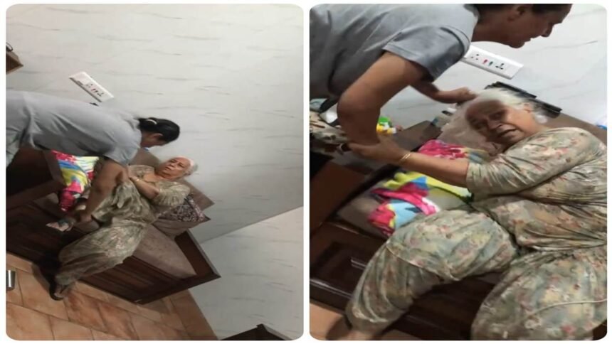 - ਥਾਣਾ ਤਿੱਬੜ ਅਧੀਨ ਆਉਂਦੇ ਪਿੰਡ ਕੋਠੇ ‘ਚ ਇਕ ਨੂੰਹ ਨੇ ਆਪਣੀ ਬਜ਼ੁਰਗ ਸੱਸ ਨਾਲ ਮਾਰਕੁਟਾਈ ਕੀਤੀ। ਇਸ ਘਟਨਾ ਦੀ ਵੀਡੀਓ ਸੋਸ਼ਲ ਮੀਡੀਆ ‘ਤੇ ਤੇਜ਼ੀ ਨਾਲ ਵਾਇਰਲ ਹੋ ਰਹੀ ਹੈ। ਬਜ਼ੁਰਗ ਦੇ ਨਾਲ ਮਾਰ-ਕੁਟਾਈ ਕਰਨ ਦੇ ਨਾਲ-ਨਾਲ ਉਸ ਨੂੰ ਥੱਪੜ ਵੀ ਮਾਰੇ ਗਏ। ਇਸ ਦੌਰਾਨ ਕੋਲ ਖੜ੍ਹੇ ਪੁੱਤ ਨੇ ਪੂਰੇ ਮਾਮਲੇ ਦੀ ਵੀਡੀਓ ਬਣਾਈ। ਹਾਲਾਂਕਿ ਉਹ ਵੀਡੀਓ ‘ਚ ਮਾਂ ਨੂੰ ਦਾਦੀ ਨਾਲ ਮਾਰਕੁਟਾਈ ਨਾ ਕਰਨ ਲਈ ਕਹਿੰਦਾ ਸੁਣਾਈ ਦਿੰਦਾ ਹੈ ਪਰ ਉਸ ਨੇ ਮਾਂ ਨੂੰ ਰੋਕਣ ਦੀ ਕੋਈ ਕੋਸ਼ਿਸ਼ ਨਹੀਂ ਕੀਤੀ। ਇਸ ਸਮੇਂ ਪੁਲਿਸ ਵੀਡੀਓ ਦੇ ਆਧਾਰ ‘ਤੇ ਮਾਮਲੇ ਦੀ ਜਾਂਚ ਕਰ ਰਹੀ ਹੈ ਪਰ ਕਿਸੇ ਦੇ ਖ਼ਿਲਾਫ਼ ਕੋਈ ਕਾਰਵਾਈ ਨਹੀਂ ਕੀਤੀ ਗਈ। ਇਸ ਤੋਂ ਇਲਾਵਾ ਮੁਲਜ਼ਮ ਔਰਤ ਬਜ਼ੁਰਗ ਦੇ ਵਾਲ ਵੀ ਖਿੱਚਦੀ ਦਿਖਾਈ ਦਿੰਦੀ ਹੈ। ਬਜ਼ੁਰਗ ਔਰਤ ਦੀ ਨੂੰਹ ਉਸ ਨੂੰ ਕਹਿੰਦੀ ਹੈ ਕਿ “ਮੈਨੂੰ ਦੰਦ ਨਾਲ ਕਿਉਂ ਕੱਟਿਆ?” ਇਸ ਤੋਂ ਬਾਅਦ ਉਹ ਸੱਸ ਨੂੰ ਹੱਥ ‘ਚ ਫੜਿਆ ਗਿਲਾਸ ਵੀ ਮਾਰਦੀ ਹੈ ਤੇ ਗਾਲ੍ਹਾਂ ਵੀ ਕਢਦੀ ਹੈ। ਵੀਡੀਓ ਵਿਚ ਬਜ਼ੁਰਗ ਔਰਤ ਪੂਰੀ ਤਰ੍ਹਾਂ ਬੇਵਸ ਬੈਠੀ ਦਿਖਾਈ ਦਿੰਦੀ ਹੈ। ਸੋਸ਼ਲ ਮੀਡੀਆ ‘ਤੇ ਇਸ ਦੀ ਵੀਡੀਓ ਤੇਜ਼ੀ ਨਾਲ ਵਾਇਰਲ ਹੋਣ ਤੋਂ ਬਾਅਦ ਪੁਲਿਸ ਨੇ ਆਪਣੇ ਪੱਧਰ ‘ਤੇ ਮਾਮਲੇ ਦੀ ਜਾਂਚ ਸ਼ੁਰੂ ਕਰ ਦਿੱਤੀ ਹੈ। ਹਾਲਾਂਕਿ ਬਜ਼ੁਰਗ ਔਰਤ ਨੇ ਇਸ ਬਾਰੇ ਹੁਣ ਤਕ ਕੋਈ ਸ਼ਿਕਾਇਤ ਦਰਜ ਨਹੀਂ ਕਰਵਾਈ। ਦੂਜੇ ਪਾਸੇ, ਮਾਮਲਾ ਥਾਣਾ ਤਿਬੜ ਕੋਲ ਪਹੁੰਚ ਚੁੱਕਾ ਹੈ। ਪੁਲਿਸ ਅਧਿਕਾਰੀਆਂ ਦਾ ਕਹਿਣਾ ਹੈ ਕਿ ਉਨ੍ਹਾਂ ਮਾਮਲੇ ਦੀ ਆਪਣੇ ਪੱਧਰ ‘ਤੇ ਜਾਂਚ ਸ਼ੁਰੂ ਕਰ ਦਿੱਤੀ ਹੈ।