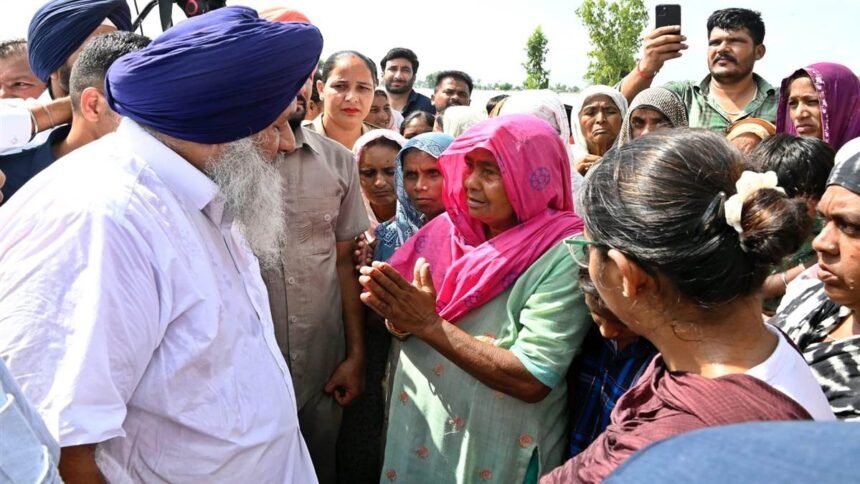 ਸ਼੍ਰੋਮਣੀ ਅਕਾਲੀ ਦਲ ਦੇ ਪ੍ਰਧਾਨ ਸੁਖਬੀਰ ਸਿੰਘ ਬਾਦਲ ਨੇ ਫ਼ਾਜ਼ਿਲਕਾ ਜ਼ਿਲ੍ਹੇ ਦੇ ਹੜ੍ਹ ਪਰਭਾਵਿੱਤ ਇਲਾਕੇ ਦ ਦੌਰਾ ਕੀਤਾ। ਦੌਰੇ ਦੌਰਾਨ ਉਨ੍ਹਾਂ ਕਿਹਾ ਕਿ ਮੁੱਖ ਮੰਤਰੀ ਭਗਵੰਤ ਮਾਨ ਵੱਲੋਂ ਝੋਨੇ ਦੀ ਖੜ੍ਹੀ ਫਸਲ ਦੀ ਪੂਰਨ ਤਬਾਹੀ ਵਾਸਤੇ 20 ਹਜ਼ਾਰ ਰੁਪਏ ਪ੍ਰਤੀ ਏਕੜ ਦੇ ਐਲਾਨੇ ਮੁਆਵਜ਼ੇ ਨੂੰ ਅੰਨਦਾਤਾ ਨਾਲ ਕੋਝਾ ਮਜ਼ਾਕ ਕਰਾਰ ਦਿੱਤਾ ਹੈ ਅਤੇ ਕਿਹਾ ਹੈ ਕਿ ਇਹ ਮਜ਼ਾਕ ਵੀ ਉਸ ਵੇਲੇ ਕੀਤਾ ਗਿਆ ਹੈ ਜਦੋਂ ਸੂਬੇ ਵਿਚ ਆਏ ਹੜ੍ਹਾਂ ਵਿਚ ਕਿਸਾਨਾਂ ਨੂੰ ਉਹਨਾਂ ਦੇ ਹਾਲ ’ਤੇ ਛੱਡ ਦਿੱਤਾ ਗਿਆ।ਅਕਾਲੀ ਦਲ ਦੇ ਪ੍ਰਧਾਨ ਨੇ ਫਾਜ਼ਿਲਕਾ ਦੇ ਹੜ੍ਹ ਮਾਰੇ ਪਿੰਡਾਂ ਦਾ ਦੌਰਾ ਕੀਤਾ ਜਿਸ ਦੌਰਾਨ ਉਹ ਫਾਜ਼ਿਲਕਾ ਵਿਚ ਸਰਹੱਦੀ ਚੌਂਕੀ ਮੌਜਾਮ ਵਿਖੇ ਵੀ ਗਏ ਜਿਥੇ ਉਹਨਾਂ ਜ਼ੀਰੋ ਲਾਈਨ ਦੇ ਨੇੜੇ ਖੇਤੀ ਕਰਨ ਵਾਸਤੇ ਕਿਸਾਨਾਂ ਨਾਲ ਗੱਲਬਾਤ ਕੀਤੀ। ਕੰਡਿਆਲੀ ਤਾਰ ਦੇ ਪਾਰ ਖੇਤੀ ਕਰਨ ਵਾਲੇ ਪਿੰਡ ਵਾਲਿਆਂ ਨੇ ਵੀਡੀਓ ਅਪੀਲ ਕਰ ਕੇ ਅਕਾਲੀ ਦਲ ਦੇ ਪ੍ਰਧਾਨ ਨੂੰ ਅਪੀਲ ਕੀਤੀ ਸੀ ਕਿ ਉਹ ਉਹਨਾਂ ਦੀਆਂ ਮੁਸ਼ਕਿਲਾਂ ਦੇ ਹੱਲ ਵਾਸਤੇ ਕਦਮ ਚੁੱਕਣ। ਇਲਾਕੇ ਦਾ ਦੌਰਾ ਕਰਨ ਮਗਰੋਂ ਸੁਖਬੀਰ ਸਿੰਘ ਬਾਦਲ ਨੇ ਪਿੰਡ ਵਾਲਿਆਂ ਨੂੰ ਭਰੋਸਾ ਦੁਆਇਆ ਕਿ ਉਹ ਉਹਨਾਂ ਦਾ ਮਸਲਾ ਰੱਖਿਆ ਮੰਤਰਾਲੇ ਕੋਲ ਚੁੱਕਣਗੇ ਤਾਂ ਜੋ ਉਹਨਾਂ ਦੀਆਂ ਜ਼ਮੀਨਾਂ ਨੂੰ ਹੜ੍ਹਾਂ ਦੀ ਮਾਰ ਤੋਂ ਬਚਾਉਣ ਵਾਸਤੇ ਢੁਕਵਾਂ ਬੰਨ ਬਣਾਇਆ ਜਾ ਸਕੇ। ਪਿੰਡ ਵਾਲਿਆਂ ਨੇ ਬਾਦਲ ਦੀ ਸ਼ਲਾਘਾ ਕੀਤੀ ਕਿ ਉਹ ਇਕੱਲੇ ਸਿਆਸੀ ਆਗੂ ਹਨ ਜੋ ਉਹਨਾਂ ਦੀ ਮਦਦ ਵਾਸਤੇ ਨਿੱਤਰੇ ਹਨ। ਮੁੱਖ ਮੰਤਰੀ ਵੱਲੋਂ ਐਲਾਨੇ ਮੁਆਵਜ਼ੇ ਦੀ ਗੱਲ ਕਰਦਿਆਂ ਸਰਦਾਰ ਬਾਦਲ ਨੇ 20 ਹਜ਼ਾਰ ਰੁਪਏ ਪ੍ਰਤੀ ਏਕੜ ਦਾ ਮੁਆਵਜ਼ਾ ਨਵੀਂ ਸ਼ੁਰੂਆਤ ਕਰਨ ਵਾਸਤੇ ਕਿਸਾਨਾਂ ਲਈ ਬਹੁਤ ਘੱਟ ਹੈ। ਉਹਨਾਂ ਕਿਹਾ ਕਿ ਨਾ ਸਿਰਫ ਕਿਸਾਨਾਂ ਨੂੰ ਖੇਤਾਂ ਵਿਚੋਂ ਰੇਤਾ ਕੱਢਣ ਵਾਸਤੇ ਪੈਸੇ ਦੀ ਜ਼ਰੂਰਤ ਹੈ ਬਲਕਿ ਖੇਤ ਵਾਹੁਣ ਲਈ ਅਤੇ ਉਹਨਾਂ ਨੂੰ ਕਣਕ ਦੀ ਬਿਜਾਈ ਵਾਸਤੇ ਤਿਆਰ ਕਰਨ ਲਈ ਵੀ ਪੈਸੇ ਚਾਹੀਦੇ ਹਨ। ਉਹਨਾਂ ਨੂੰ ਸਰਟੀਫਾਈਡ ਬੀਜ ਅਤੇ ਖਾਦਾਂ ਦੀ ਵੀ ਜ਼ਰੂਰਤ ਹੈ। ਉਹਨਾਂ ਕਿਹਾ ਕਿ ਪਸ਼ੂਆਂ ਅਤੇ ਘਰਾਂ ਦੇ ਹੋਏ ਨੁਕਸਾਨ ਲਈ ਐਲਾਨਿਆ ਮੁਆਵਜ਼ਾ ਵੀ ਲੋਕਾਂ ਦੇ ਨੁਕਸਾਨ ਦੀ ਪੂਰਤੀ ਵਾਸਤੇ ਢੁਕਵਾਂ ਨਹੀਂ ਹੈ। ਉਹਨਾਂ ਕਿਹਾ ਕਿ ਇਹ ਉਹੀ ਮੁੱਖ ਮੰਤਰੀ ਹੈ ਜਿਸਨੇ ਭਰੋਸਾ ਦੁਆਇਆ ਸੀ ਕਿ ਉਹ ਬੱਕਰੀਆਂ ਅਤੇ ਮੁਰਗੀਆਂ ਦਾ ਵੀ ਮੁਆਵਜ਼ਾ ਦੇਵੇਗਾ ਪਰ ਇਹ ਤਾਂ ਲੋੜ ਵੇਲੇ ਵੀ ਢੁਕਵਾਂ ਮੁਆਵਜ਼ਾ ਦੇਣ ਵਿਚ ਨਾਕਾਮ ਰਿਹਾ ਹੈ। ਉਨ੍ਹਾਂ ਕਿਹਾ ਕਿ ਕਿਸਾਨੀ ਸੰਕਟ ਵਿਚ ਹੈ ਅਤੇ ਉਹ ਅਗਲੇ ਦੋ ਸਾਲਾਂ ਤੱਕ ਆਪਣੇ ਪੈਰਾਂ ਸਿਰ ਨਹੀਂ ਹੋ ਸਕਦੀ। ਉਹਨਾਂ ਕਿਹਾ ਕਿ ਹੜ੍ਹ ਮਾਰੇ ਕਿਸਾਨਾਂ ਅਤੇ ਖੇਤ ਮਜ਼ਦੂਰਾਂ ਵਾਸਤੇ ਕਰਜ਼ਾ ਮੁਆਫੀ ਸਮੇ਼ ਦੀ ਜ਼ਰੂਰਤ ਹੈ। ਉਹਨਾਂ ਕਿਹਾ ਕਿ ਕਿਸਾਨਾਂ ਨੂੰ ਆਪਣੇ ਪੈਰਾਂ ਸਿਰ ਹੋਣ ਵਾਸਤੇ ਰਾਜ ਸਰਕਾਰ ਤੋਂ ਮਦਦ ਦੀ ਜ਼ਰੂਰਤ ਹੈ। ਉਹਨਾਂ ਇਹ ਵੀ ਮੰਗ ਕੀਤੀ ਕਿ ਹੜ੍ਹ ਪ੍ਰਭਾਵਤ ਲੋਕਾਂ ਦੇ ਬੱਚਿਆਂ ਦੀ ਇਕ ਸਾਲ ਦੀ ਫੀਸ ਪੂਰੀ ਤਰ੍ਹਾਂ ਮੁਆਫ ਕੀਤੀ ਜਾਵੇ। ਹੜ੍ਹ ਪ੍ਰਭਾਵਤ ਲੋਕਾਂ ਨੂੰ ਸਮੱਗਰੀ ਤੇ ਹੋਰ ਸਹਾਇਤਾ ਪ੍ਰਦਾਨ ਕਰਨ ਤੋਂ ਬਾਅਦ ਹੁਣ ਅਕਾਲੀ ਦਲ ਹੜ੍ਹ ਪੀੜ੍ਹਤਾਂ ਦੇ ਮੁੜ ਵਸੇਬੇ ਵਾਸਤੇ ਵਿਆਪਕ ਪੈਕੇਜ ਲਿਆ ਰਿਹਾ ਹੈ। ਉਹਨਾਂ ਕਿਹਾ ਕਿ ਅਸੀਂ ਹੜ੍ਹ ਪ੍ਰਭਾਵਤ ਕਿਸਾਨਾਂ ਨੂੰ 30 ਹਜ਼ਾਰ ਕੁਇੰਟਲ ਸਰਟੀਫਾਈਡ ਬੀਜ ਪ੍ਰਦਾਨ ਕਰਾਂਗੇ ਅਤੇ ਇਸ ਤੋਂ ਇਲਾਵਾ ਉਹਨਾਂ ਨੂੰ 500 ਟਰੱਕ ਤੂੜੀ ਤੇ ਰਾਸ਼ਨ ਪ੍ਰਦਾਨ ਕਰਾਂਗੇ। ਉਹਨਾਂ ਕਿਹਾ ਕਿ 